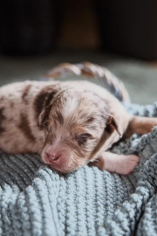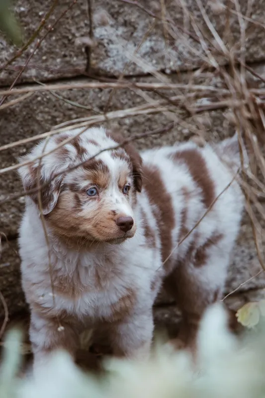 Unsere kleine Red Merle Bi Hündin ist ein echtes Herzenskind. Mali liebt einfach jeden – sie begrüßt Menschen mit einer Wärme und Offenheit, die sofort ein Lächeln ins Gesicht zaubert. Sie ist unglaublich menschenbezogen, sucht stets die Nähe und den Kontakt – und gibt dabei so viel Liebe, wie sie selbst auch braucht.